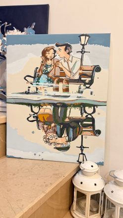 Aşkın Yansıması modelini boyamak gerçekten çok keyifliydi. Sahnedeki “yansıma” detayı tabloya ayrı bir derinlik katıyor; bitince çok tatlı ve romantik bir atmosfer oluşuyor. Renkler uyumlu, geçişler özellikle kıyafetlerde ve bank detaylarında çok güzel çıktı.